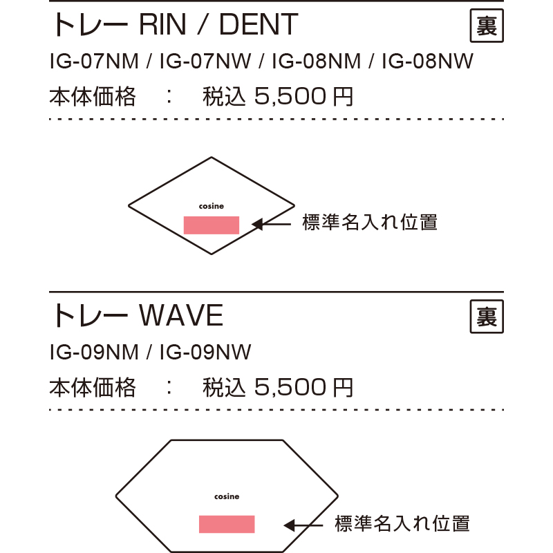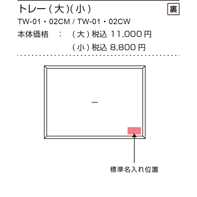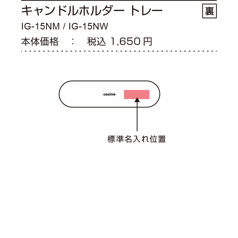 (1) 商品を選び、名入れの位置を確かめます。(製品ごとに標準名入れ位置があります。)