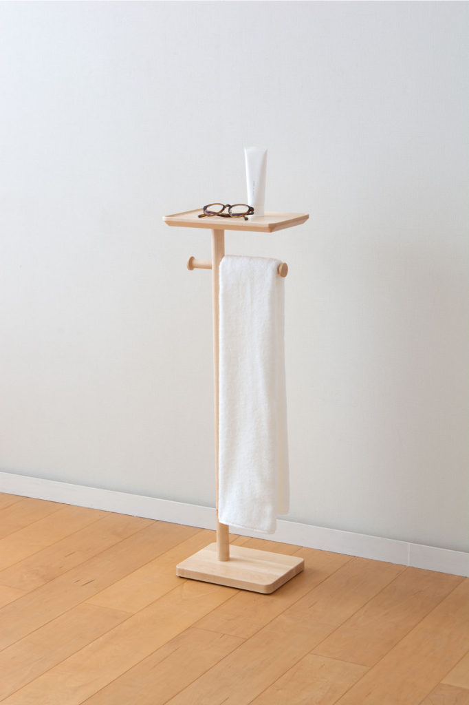 | BR-03CM | タオルラックテーブル | メープル/ウレタン塗装 | 幅30×奥行20×高さ90cm | 約4kg | 天板5kg/タオル掛け5kg | ¥49,500 | 4582632815147 |