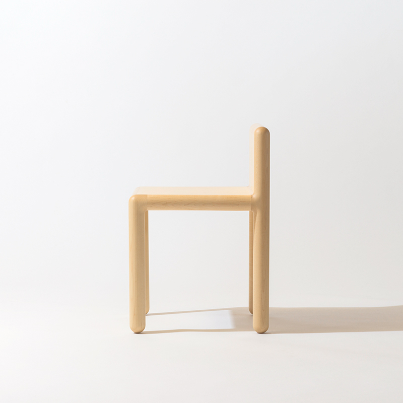 球体の軌跡が描いた椅子の形は、幾何学的でありながら、誰もが“こころ”に思い描く普遍的で愛らしい形をしています。一見シンプルに見える形は、これまでの木製椅子の常識に当てはまらない、いくつもの技術的な挑戦があってこそ。角や凹凸がなく、座面の裏側までフラットにするなど、細部までこだわった形は削り出す前の部材まで繊細な精度を求められます。