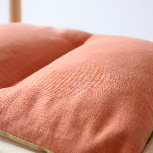 coitti クッションは、『coitti チェア』『coitti スツール』にしっかりと紐で固定することができるリバーシブルカラーのクッションです。
