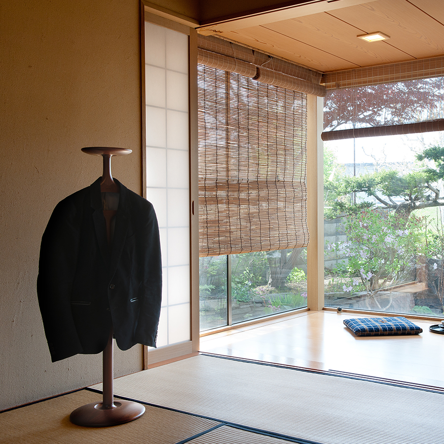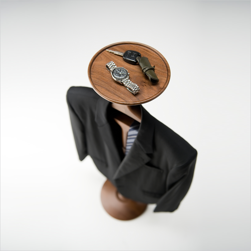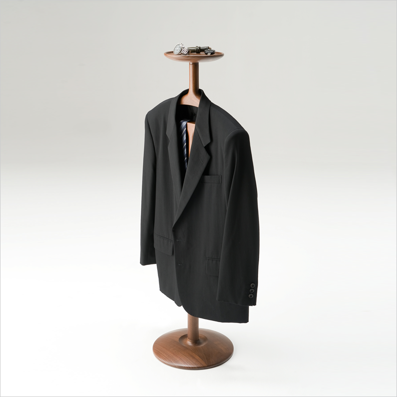 ジャケットを掛け、時計や鍵を置く。ただそれだけで、絵になるパーソナルなラックです。
