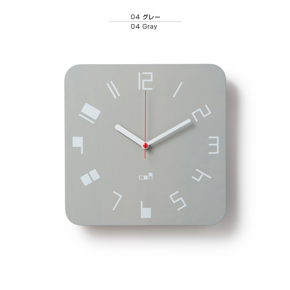 coaのシルエットから出来上がったcoaロゴをベースとした、オリジナルの数字フォントをシルク印刷した壁掛け時計です。ナチュラル、ホワイト、グレー、ブラウンの4色でどこかcoaの形を彷彿させる緩やかな四角形が特徴の時計です。文字盤、針、数字の色のバランスは読みやすく、インテリアのアクセントにもなってくれます。