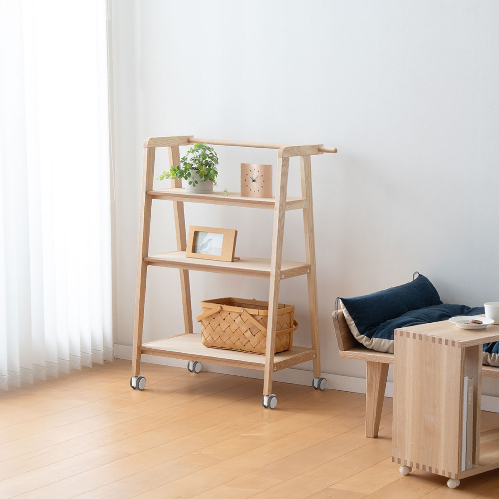 | DR-08NT | ワゴンシェルフ | 北海道 タモ/オイル仕上げ | 幅80.5×奥行39.5×高さ100.5cm | 約9.8kg | 50kg(棚板各15kg) | ¥66,000 | 4582632810333 |