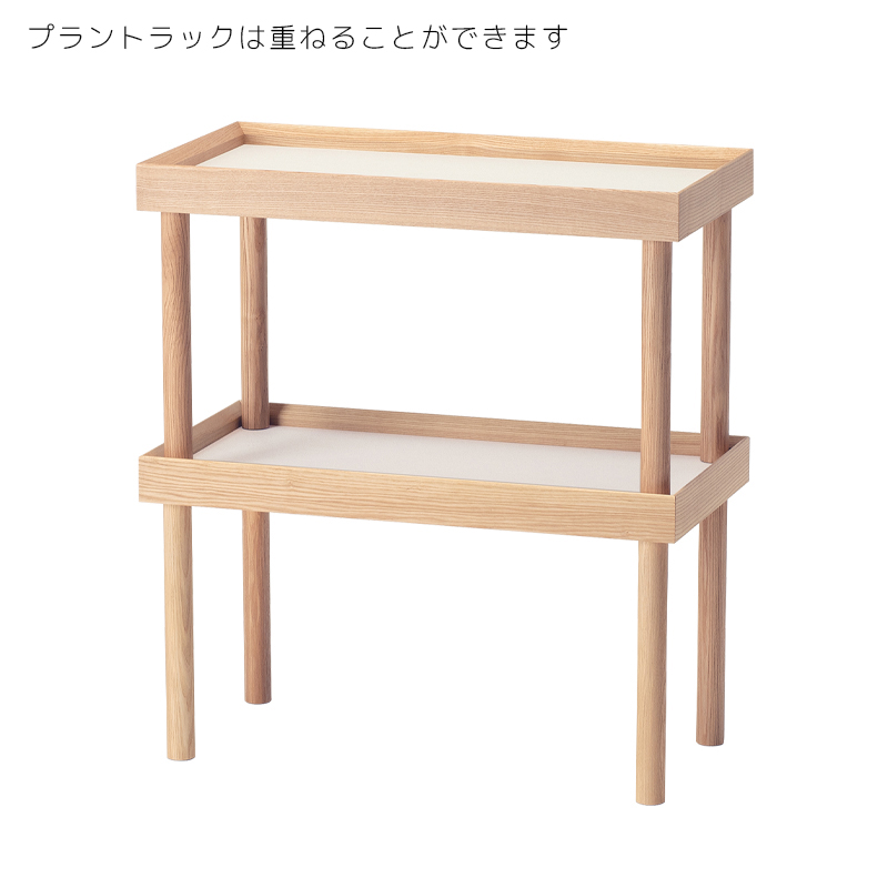 植物をまとめて置いたり、お気に入りのアートやオブジェも一緒に飾りたくなるような飾り台です。植物を床から少し高めに置くことができるので、背の低い植物もリビングでのくつろいだ視線の高さにあわせて飾ることができます。(L)のサイズは幅70cm×奥行35cmとたくさんの植物をアレンジして置くことができます。同じサイズのラックを2台重ねることができるので、植物が増えた時も買い足して使い続けることができますし、植物が成長した時は2台を並べて置いたりと、植物の成長とともに置き方を変えながら臨機応変にご使用いただけます。また、同サイズで展開するプラントムーバーと組み合わせてワゴンのように使うことで、移動も楽に行えるようになります。