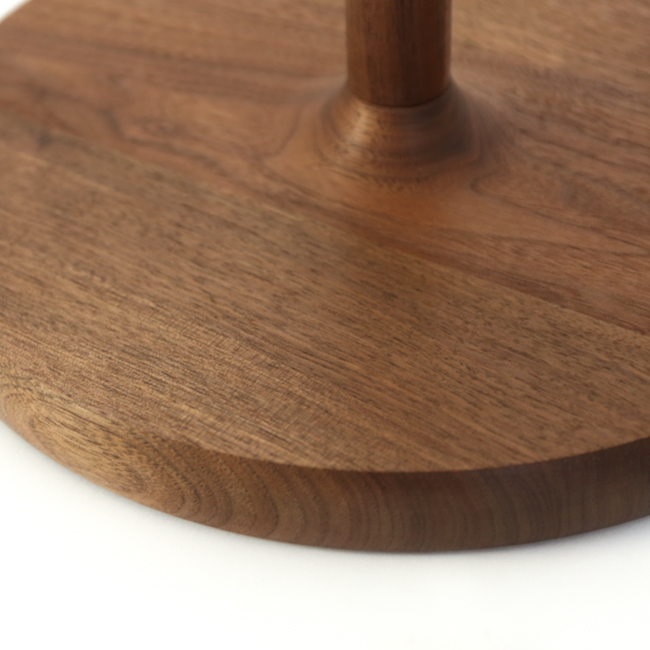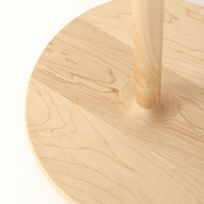 木質感が魅力のスタンダードなフロアスタンドです。スタンダードな構造ながら、ベースの立ち上がりからスッと伸びる支柱との一体感や小口の丸い面取りなど、無垢材を活かしたディテールが特徴です。