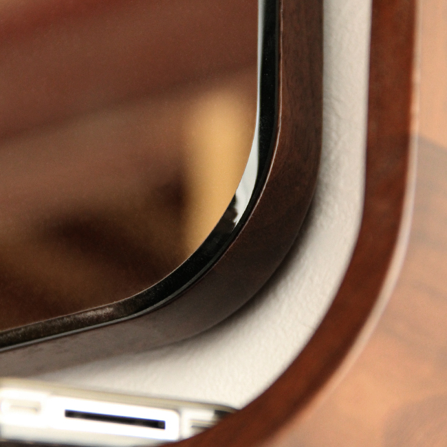 シンプルながらウォルナットのソリッドな質感が冴えるフォルムは、最新の機械加工技術で無垢材を削り出しています。