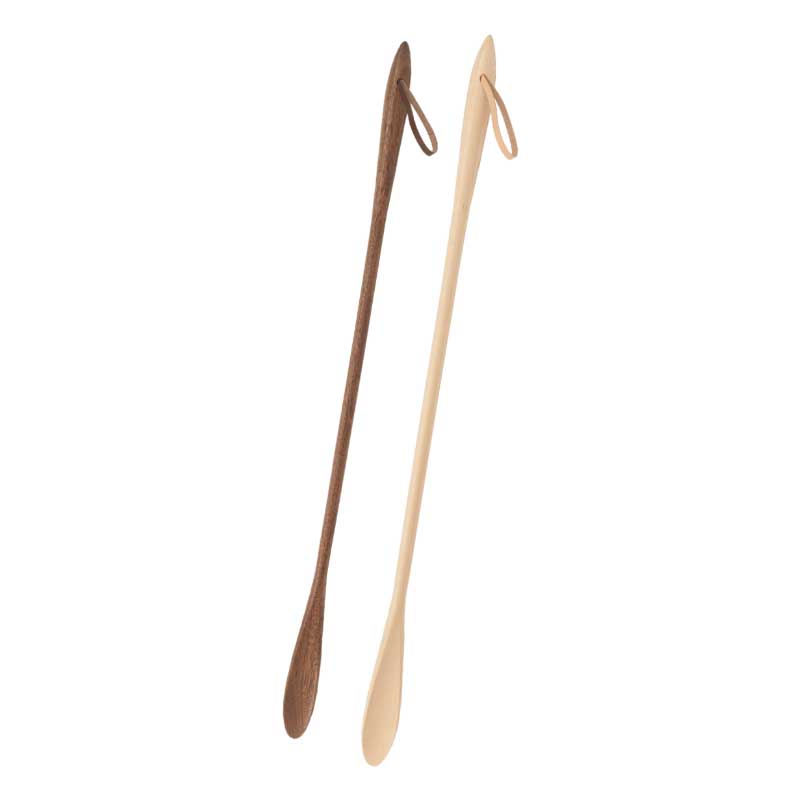 無垢材から削り出され、踵への当たりや滑り具合、持ち手の握り心地を考え抜いた靴べらは、彫刻を思わせるなめらかなフォルムに仕上がりました。