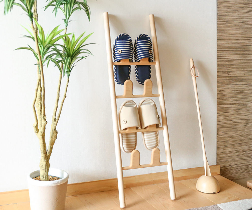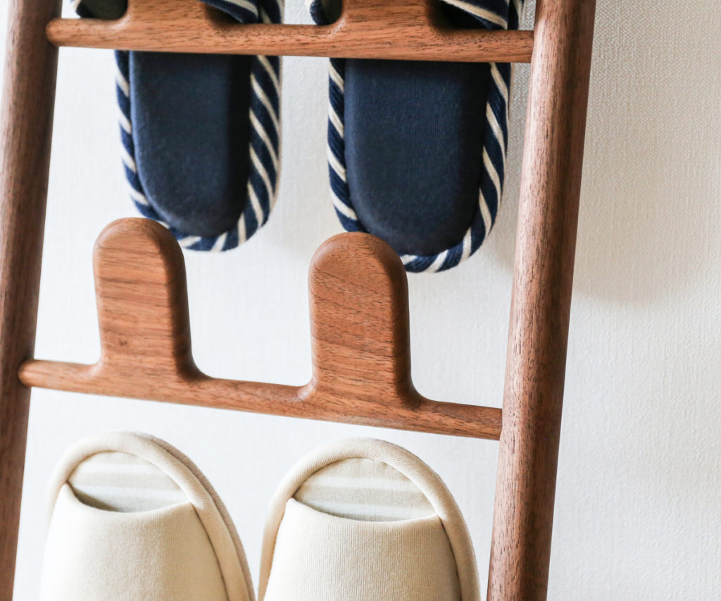 スリッパを掛けているときも、ないときも木の素材感を大切にした美しい佇まいのスリッパラックです。