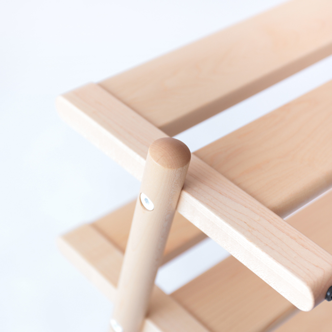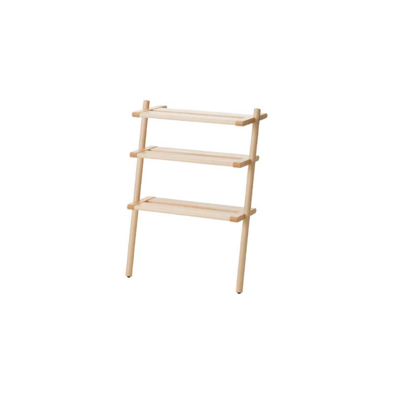 壁に立てかけるタイプのシューラック。各段で棚の高さが違うので、子どもの靴やスニーカーから高さのあるブーツや登山靴まで様々な靴を収納できます。