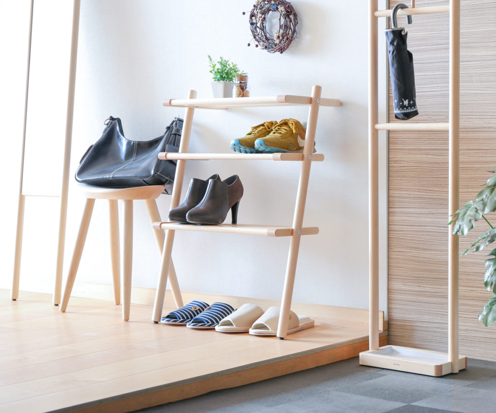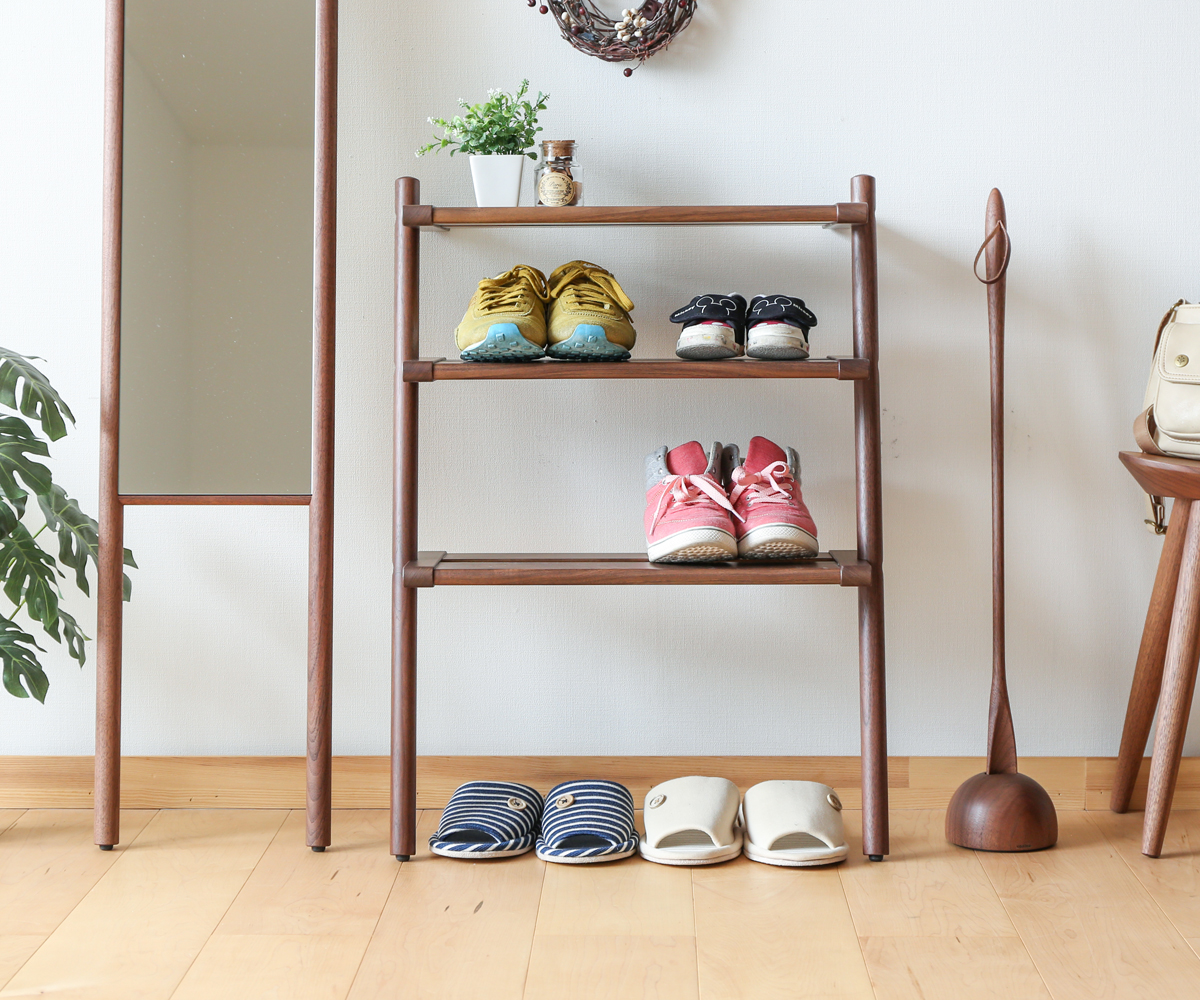 8足まで収納可能で、1日履いた靴を風通し良く休ませることも。玄関の掃除の時には、さっと持ち運んで移動出来ます。