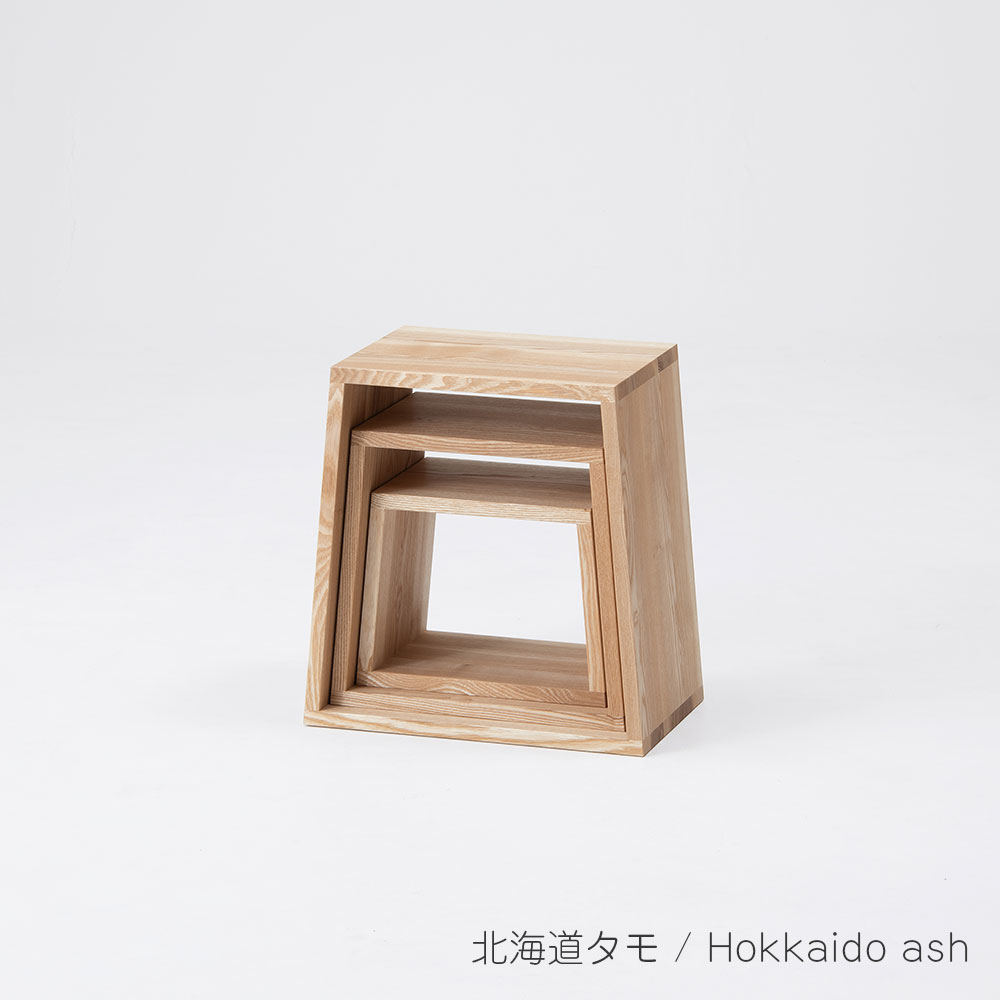 | ST-19NT | ネストスツール | タモ/オイル仕上げ | (小)幅31.5×奥行20.5×高さ24cm (中)幅37×奥行23.5×高さ34cm (大)幅42.5×奥行26×高さ44cm | (小)約2.4kg (中)約3.5kg (大)約5kg | 80kg | ¥74,800 | 4582632815024 |