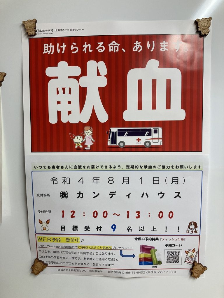 今朝も曇り空、気温も変わりなく暑~い!コサイン旭川本店の前に植樹した小さなナラがこんなに大きくなりました。そして、今年ドングリの実を付けてくれました。北海道を代表するミズナラは、60~80年経過すると家具用材として活用できます。2004年より、旭川家具工業協同組合主催の植樹を毎年行い3,000~5,000本のミズナラを植樹していますが、家具材に活用できるまでには程遠い話です。また、活用できるまでには毎年下草刈などの手入れが必要です。私達は、植樹はしますが管理までのお手伝いはしていません。さて、来週から8月に入ります。例年だと、暑さもピークを越え涼しくなって来ます。お盆休みもありお墓参り等、家族含め交流が多くなる季節ですね。そこで気になるのがコロナです。31日に母の4回目の接種があります。また8月1日に、定期的に㈿旭川木工センターに献血車が来ます。団地なので多くの働く社員に協力を願っての事ですが、現実は献血に協力しているのは10数名で、何時も同じ顔ぶれです。献血の対象者は69歳までとなっているので、私もあと一年しか協力できません。今は、血液型のなかでもB型が一番困っているそうです。