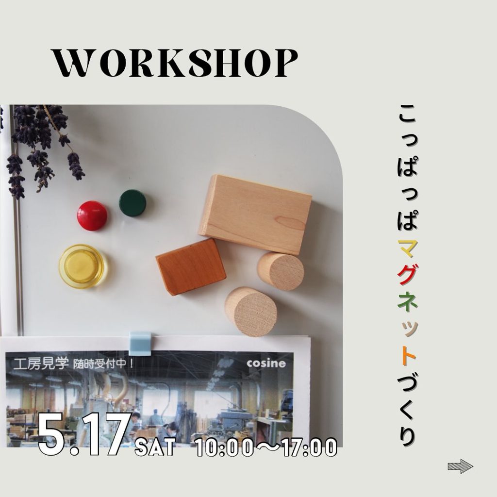 「5月のワークショップ開催♪ 小さな木片がマグネットに生まれ変わります」