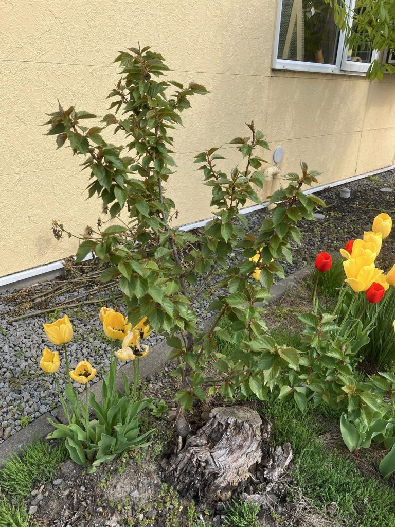 桜が終わると、サクランボの木々に白い可憐な花が咲き始めます。ふと、子どもたちがまだ幼かった頃の庭の風景を思い出しました。自宅には5本のサクランボの木があり、毎年その実を求めて、近所の子どもたちと木に登ってサクランボ狩りを楽しんでいたものです。あまりに大きくなり、隣家の境界を越えてしまったため、やむを得ず伐採しましたが、あのにぎやかで微笑ましい光景は今でも心に残っています。会社でもかつて伐採したサクランボの木のあとに、小さな若木が育ってきています。またいつか、実をつけてくれる日を楽しみにしていま