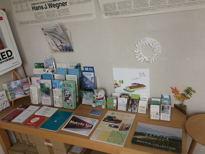 ショップ内では、コサイン製品だけでなく、地域の魅力を感じていただけるような情報も発信しています。例えば、妻と訪れたレストランや、イベントでいただいたショップカード、パンフレットなどを置いております。お客様に「こんな素敵な場所もあるんだ!」と感じていただけることを願っています。