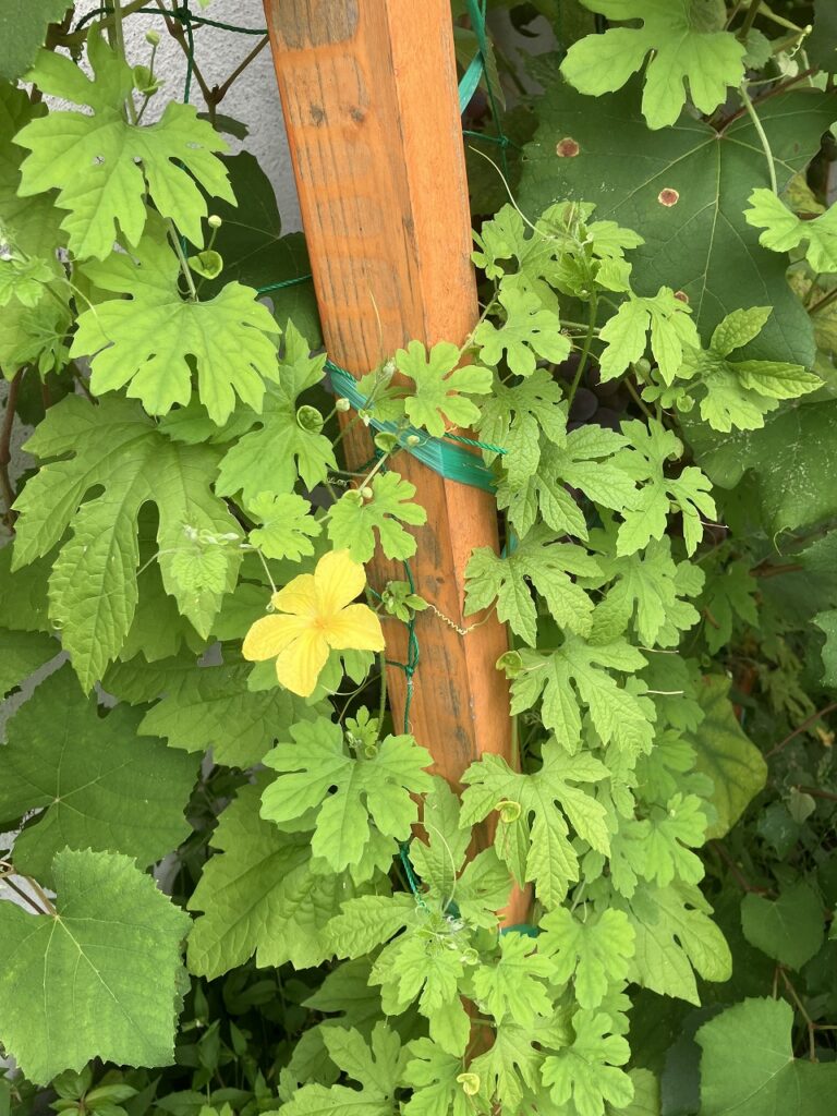 庭では、朝顔が咲き始め、ゴーヤの黄色い花も顔を見せています。ぶどうも色づき始め、キュウリも負けじと実をつけてくれました🥒🍇🌼。自然のめぐみを間近に感じる朝です。