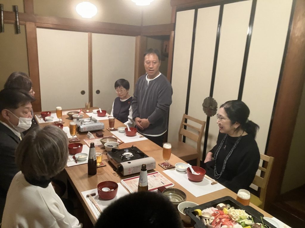 11月16日、蕎麦と日本料理のおかだ紅雪庭で、学びの仲間たちと望年会を開きました。今年の主役は「きんき鍋」。数年ぶりの再会もあり、業種や年齢を超えた仲間たちが集まりました。近況報告は多彩で、笑いあり、感動ありの濃密な4時間。話が尽きず時間が足りないほどでしたが、最後は「また来年も!」と笑顔で約束し、名残惜しく解散しました。お互いの違いを楽しみながら深まる絆。鍋を囲む温かさが、心までほぐしてくれる夜となりました。ちなみにこの四角い鍋を「道楽鍋」と言い、旭川工業団地に隣接する鉄工・木工・流通の皆さんで、旭川を元気にしようと開発製品化したものです。ご飯を炊くことからステーキまで作れてしまう優れものです。既に商品は発売されていませんが、是非おかだ紅雪庭にて「おいしい!」を体験してください。