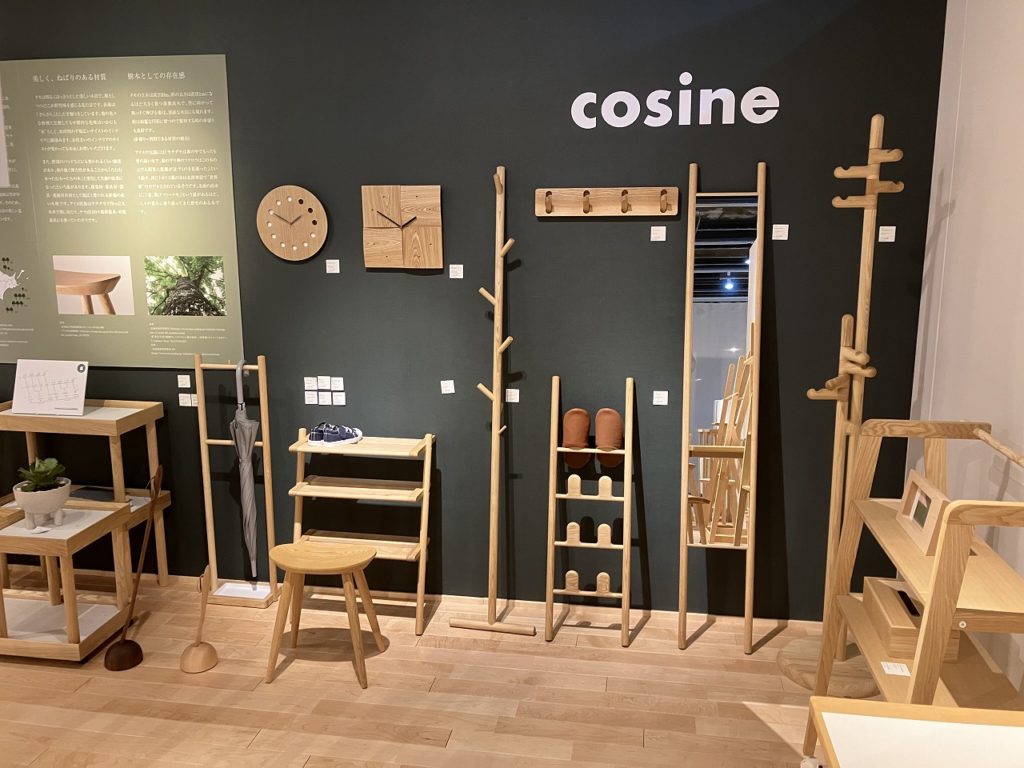 大型家具メーカーが多く集まる中、コサインの製品は一味違います。靴ベラ掛時計、スツール、ランプ、小テーブルといったアイテムは、家一軒分を長く愛用できるようデザインされ、どれも木の風合いを大切にした「暮らしの道具」です。また、ギフト商品も豊富に取り揃えており、大切な人への贈り物にも最適です。