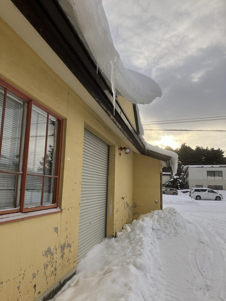 この時期は、屋根の雪がゆるみ、夜に凍り、