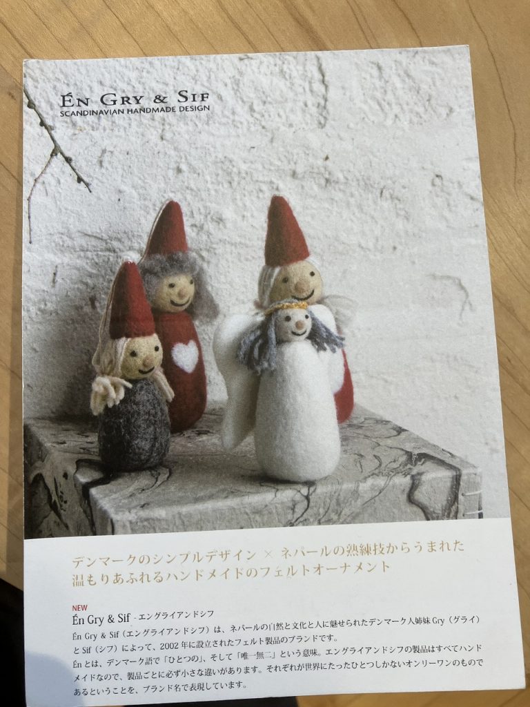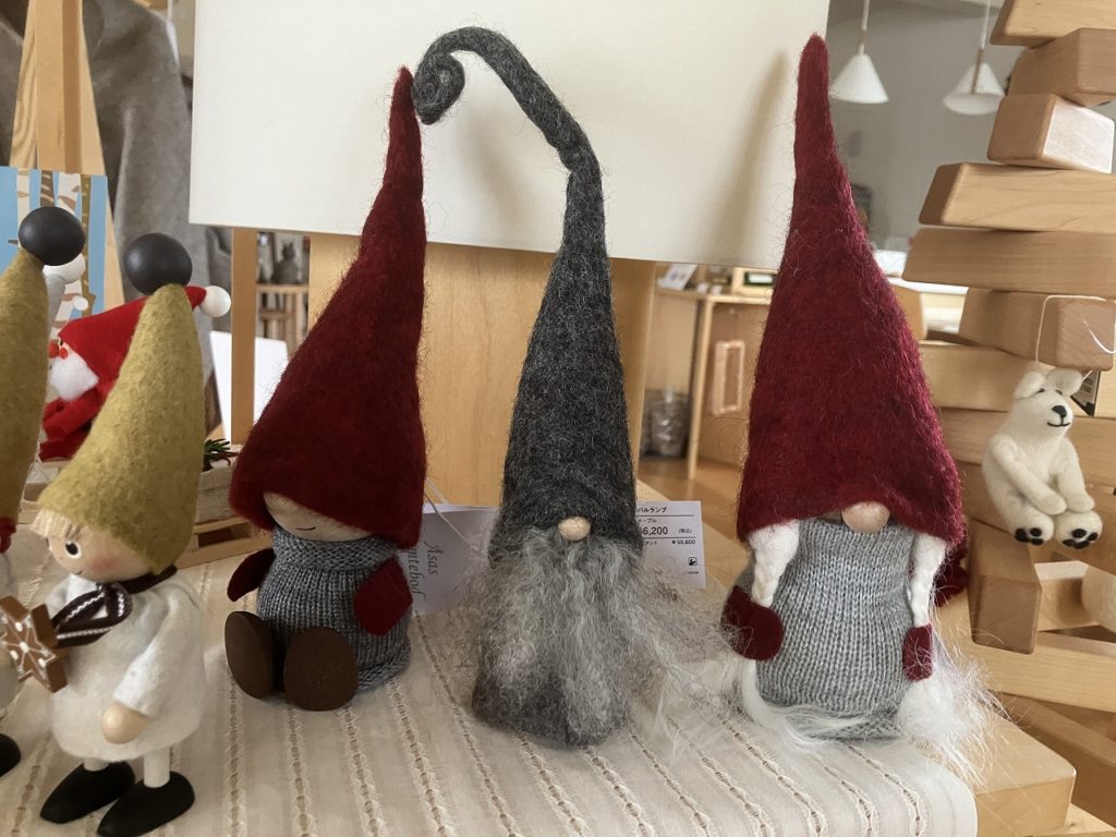 コサイン旭川本店、コサイン青山では、クリスマスシーズンにぴったりの北欧ブランド「Gry&Sif(グリ&シフ)」のフェルト人形を取り扱っています。