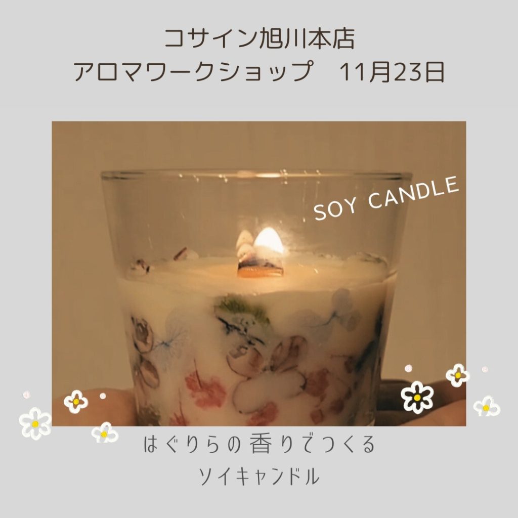 旭川のアロマブランド「グラース」さんと一緒に作る、香り豊かな「アロマキャンドル」は、クリスマスにぴったりのアイテム。温かい灯りと香りで素敵なひとときを演出しませんか?