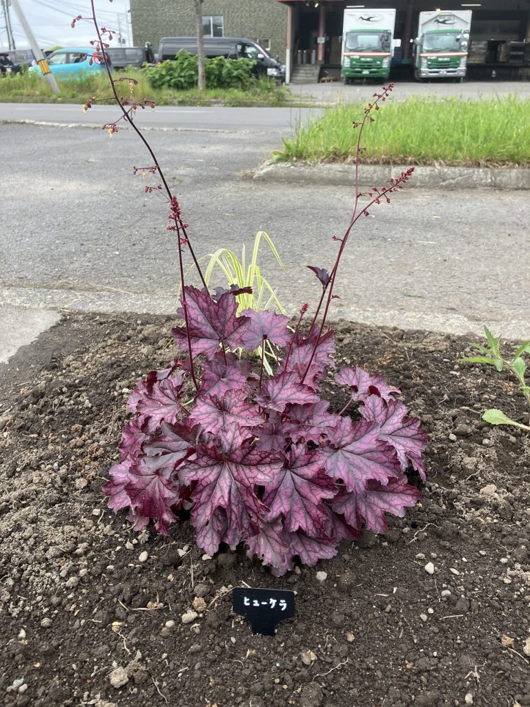 コサイン旭川本店の表通りの花壇では、ラベンダーが花実を付け始めました。これからの季節に楽しめる美しい花です。一方、お客様駐車場側の花壇には、ガーデニングが好きな社員の手で育てられた17種類の草花が彩りを添えています。それぞれの花には名前が添えられており、訪れる皆さまにも分かりやすいよう工夫されています。