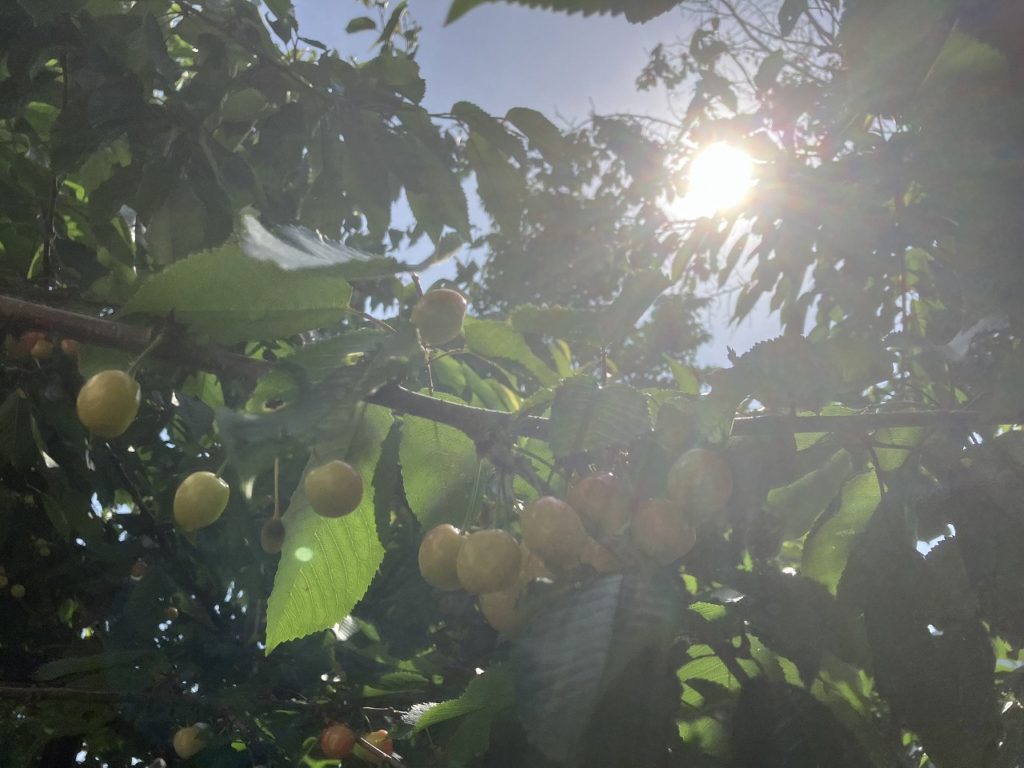 工房に隣接するお隣のメーカーのサクランボの木が、少しずつ色付き始めています。7月に入ると、近隣の果樹園ではサクランボ狩りが始まりますが、今はイチゴ狩りのシーズン真っ只中です。新鮮な果実を摘み取る楽しみは、まさに夏の風物詩ですね。