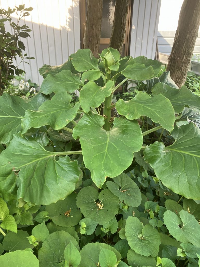 私の自宅の花壇にも、毎年出てくる不思議な植物があります。Googleの写真検索を試してみたところ「フキ」と表示されましたが、どうやら違うようです。普段ならば雑草として刈り取ってしまうのですが、今年は花の蕾をつけているので、その成長を見守ることにしました。自然の中で様々な光景に出会うと、心が癒されます。
