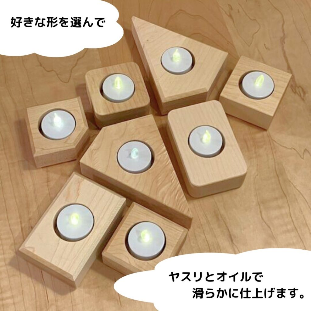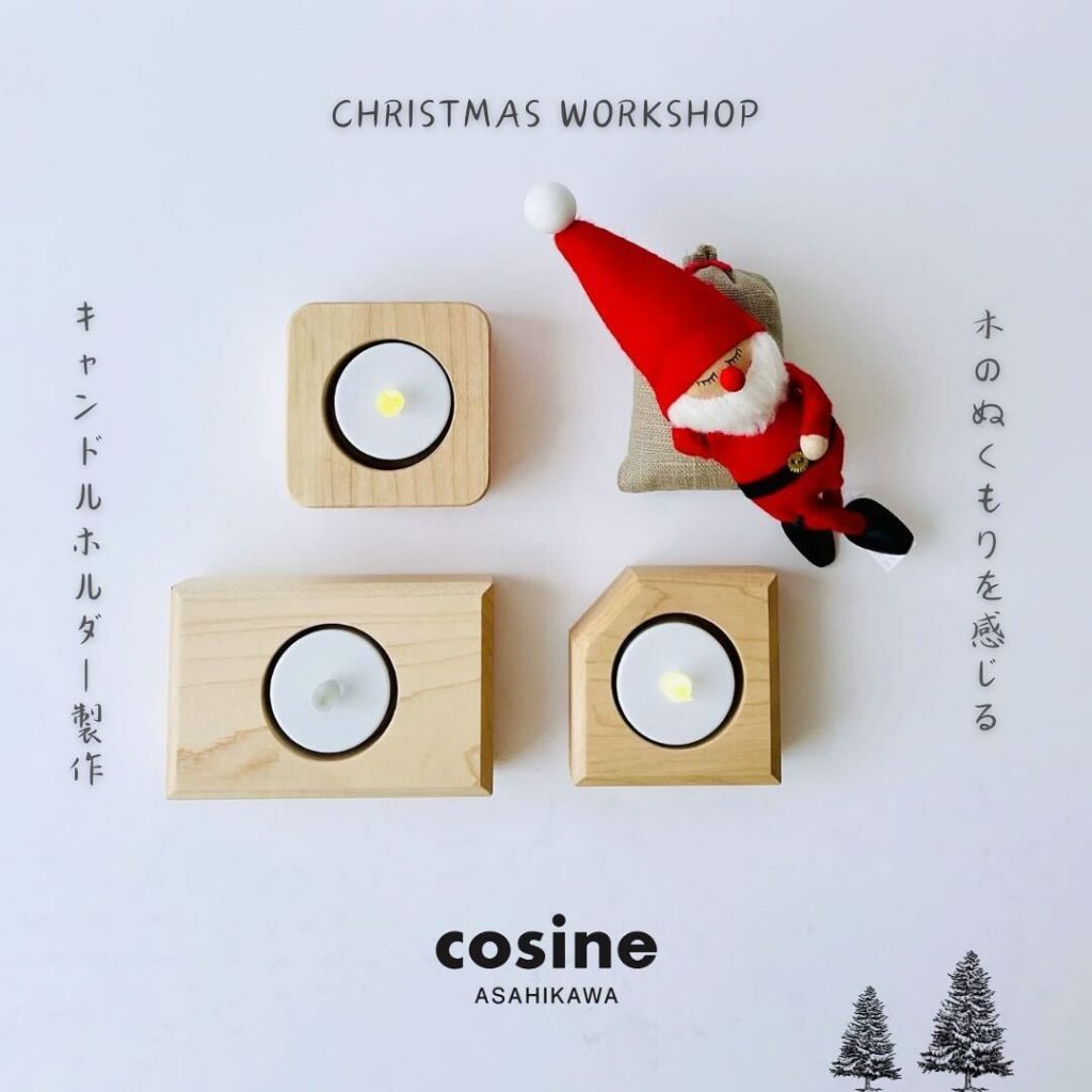 クリスマスのひとときを特別に演出したい方へ。コサイン旭川では、木の温もりが感じられる「手作りキャンドルホルダー」のワークショップを開催します。クリスマスディナーのテーブルを飾るのはもちろん、大切な人への心のこもったギフトとしても最適。初めての方でも安心して取り組めるよう、丁寧にサポートいたします。木の香りに包まれながら、ものづくりの喜びを感じてみませんか?