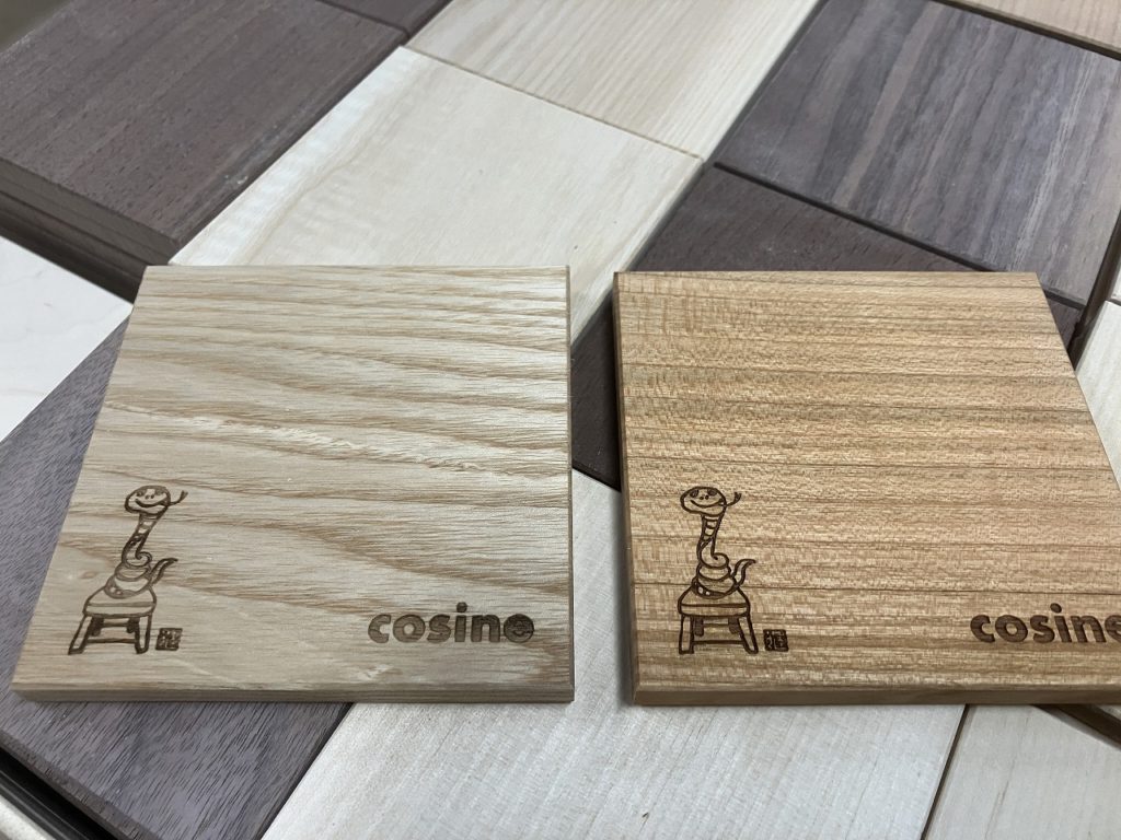一方、コサイン工房では年始のご挨拶にぴったりな「干支コースター」(非売品)の製作が進んでいます。来年の干支「辰」をモチーフにしたデザインは、昇夢虹/小川健一氏の手によるもの。干支シリーズはこれで11支目となり、毎年お客様に楽しんでいただいています。一つひとつ丁寧に作られたコースターには、木のぬくもりと新年への思いが込められており、新年にお越しいただきましたお客様や、24都道府県34店舗のコサインパートナーショップにて差し上げています。