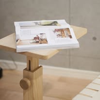 最大の特徴は高さを50~75cmまで無段階で調整できること。読書をするときは高めに、本やお茶を置くときは低めに…とシーンに合わせて快適な高さに設定できます。