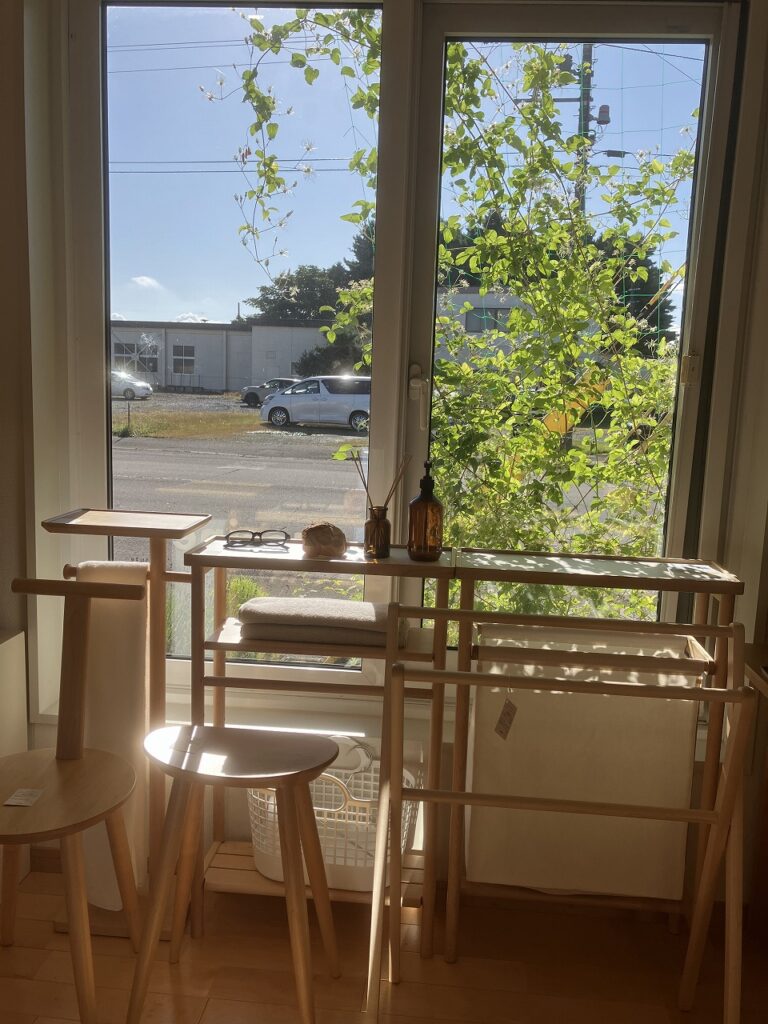本店の周りには、秋の花々が色とりどりに咲き、訪れる方をやさしく迎えてくれます。店内に一歩足を踏み入れると、窓辺から差し込む光と木の香りに包まれて、ほっと心が和む空間が広がっています🌸。