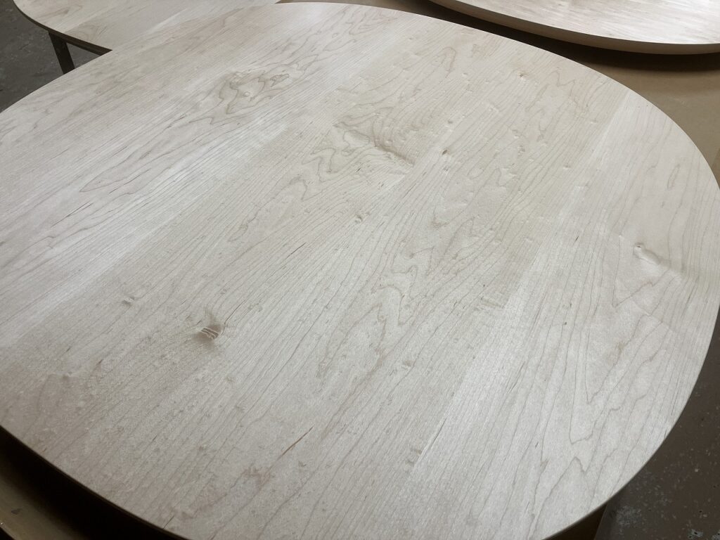 オイル塗装を終え、光を受けてやさしく輝く天板は、まるで自然からの贈り物のよう。