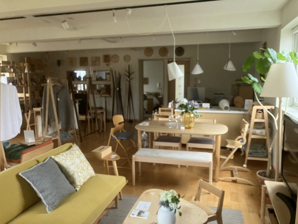店内奥には、リラクシング商品が配置され、柔らかな光に包まれた展示空間でゆったりとした時間が流れています。木製のテーブルやチェア、ライトなど、どれも職人の技術が光る一品ばかりで、家に持ち帰ればリラックスできる特別な空間が生まれるでしょう。