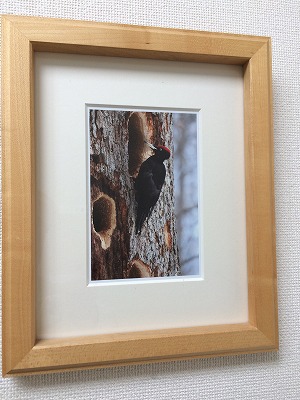 弊社の2階の事務所に上がる階段脇の壁に掛けてある写真。そう言えば先日コサインの森で見かけた穴ぼこの木は、このクマゲラの仕業だったんですね。