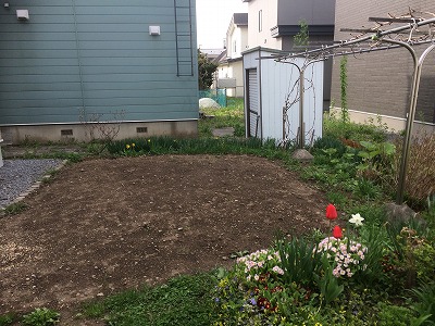 一方、自宅の庭にも花が咲きだしました。春先は、思わず花芽を踏んずけてしまい、妻に叱られて居ます。家庭菜園の準備もぶどう棚も出来ました。サクランボの花が例年に無く少ないので、今年も期待できません。また、サクランボの木の脇に頂いて来た、たい肥を積んで居ます。この中に、クワガタの幼虫が居ます。数はわかりません。後は、普段の生活に戻る事を期待しています。