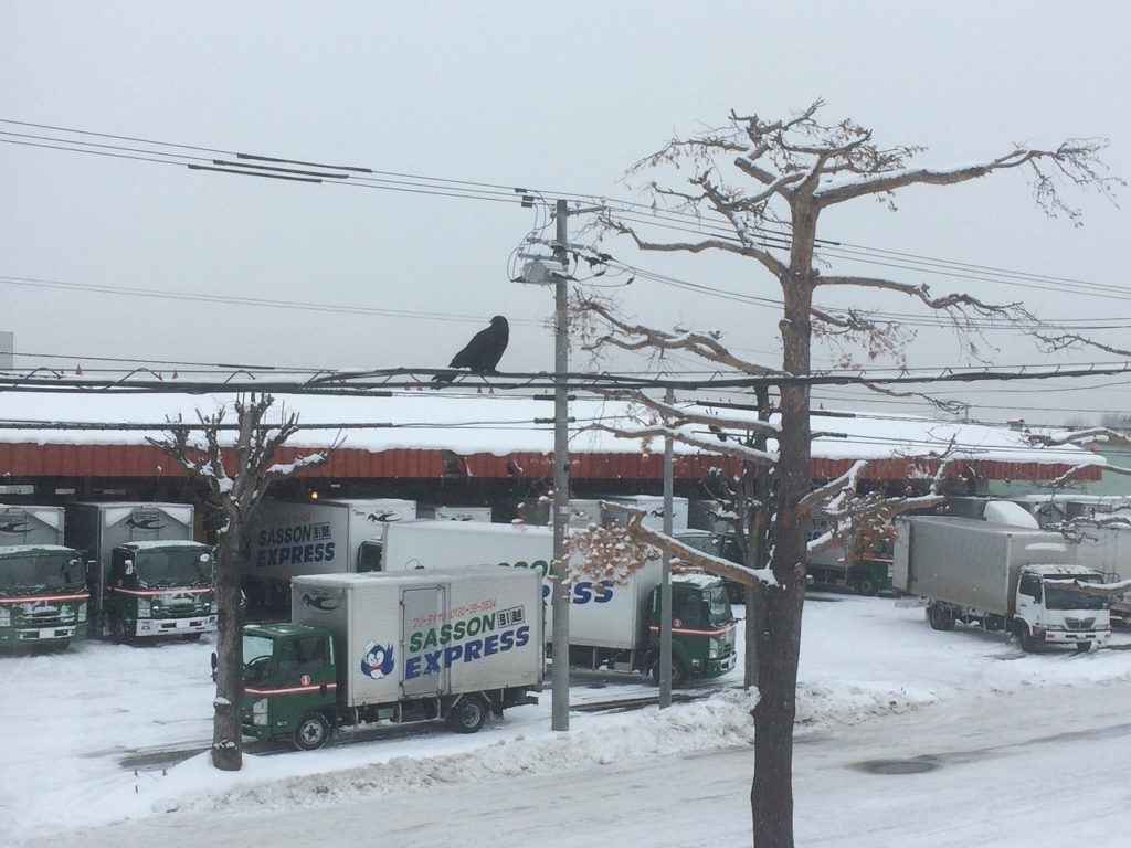 電線のうえから、カラスがこちらを伺ています。隣の木は、昨年剪定され今年はその両隣りあわせ4本の木が緑の葉が芽生えず、きっと枯れてしまったのでは・・・。運悪くそうなったのか、50年を経過している木なので、枯らせたのかはわかりません。旭川市の担当課に伺いましたが、理解できる回答を得る事は出来ませんでした。
