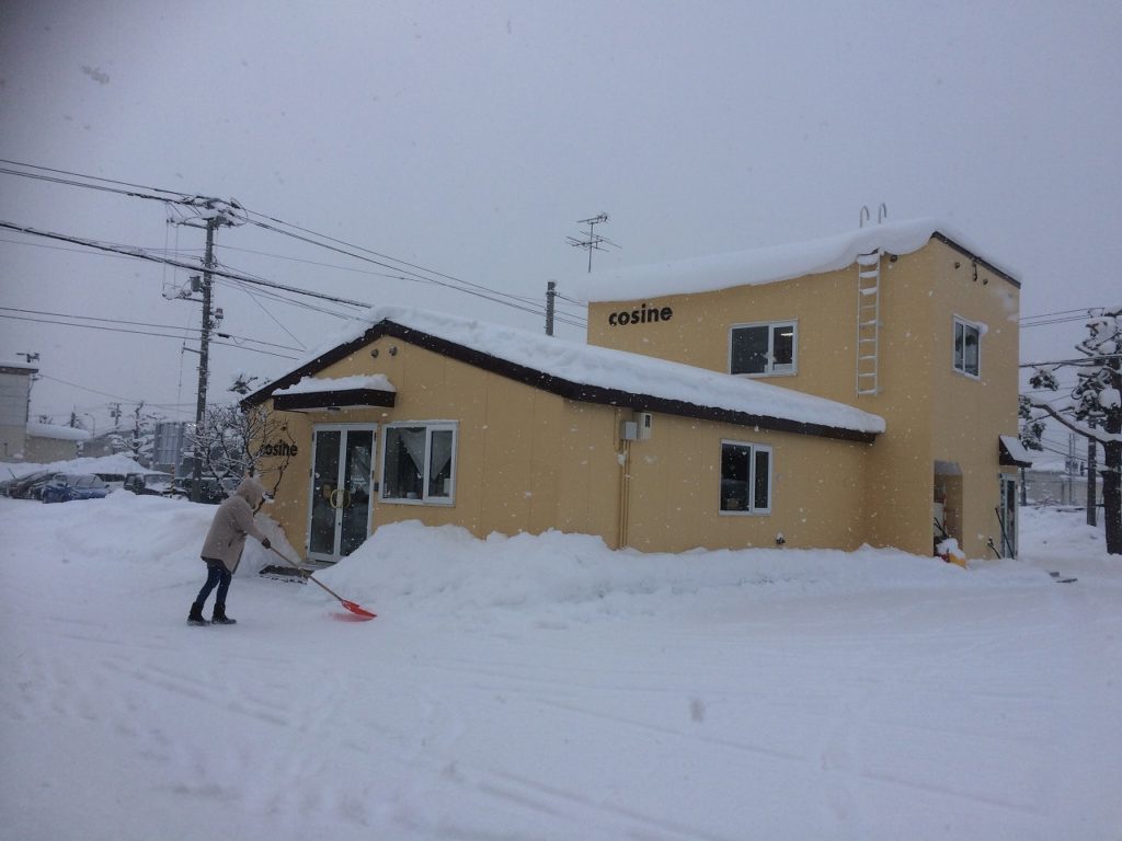 昨日は、朝から自宅の雪かきから始まりました。まずは、2階の屋根からせり出した雪庇を落とす事から始めたのですが、年のせいか高い処は怖い~。1階の屋根に登り雪かきで突っつくと、一気に落ちて来ましたが、雪の塊なので思ったほどの衝撃ではありませんでした。このほかに、車庫、物置、庭木に積もった雪を裏庭に積み上げるのに3時間かけて終え、昼食後は妻の実家に向かい大掃除と、そこでも外周りの雪かきを2時間と、一日除雪をしてました。ホッとしたのもつかの間、今朝も雪が降ってます。一方、直営ショップのコサイン旭川本店、コサイン青山については12月27日仕事納め、1月4日仕事はじめとなります。