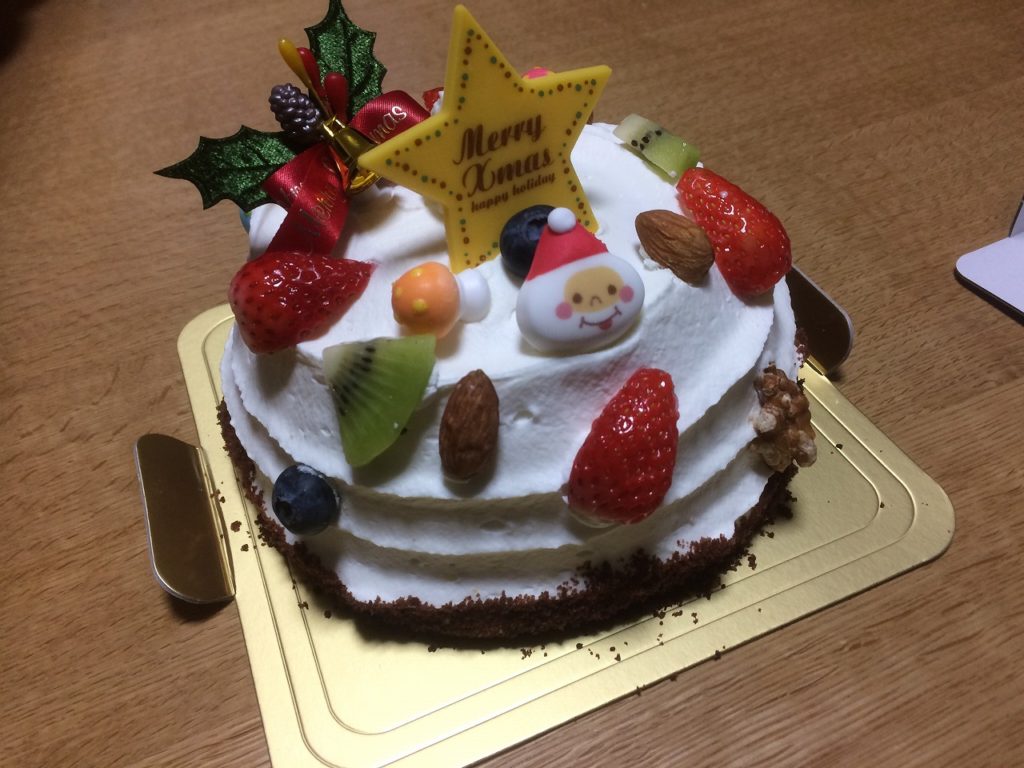11月並みの暖かい気温です。妻が、自宅の屋根の雪が落ちたよって言うので朝見ると、みごとに雪の山になっていました。それを、想定し日曜日に雪山の位置を決めて積んでいたので影響は少なく済みました。昨日は、会社の忘年会ができないので、クリスマスケーキを用意しました。私もいただきましたので、今夜頂きます。