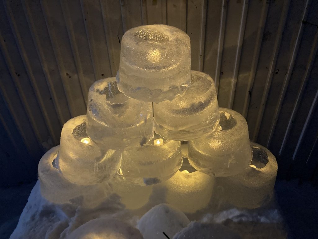 昨日、帰宅途中の交差点の信号機が付いた電柱が根元からなぎ倒されていました。何が起こったかはわかりませんが、雪が伴う冬は思わぬ事故が起きます。また、暖かいので屋根の雪やツララが落ちて来るので、頭上注意!です。下敷きになったら大けがではすみません。 せっかく作ったバケツキャンドルも融けだしました。