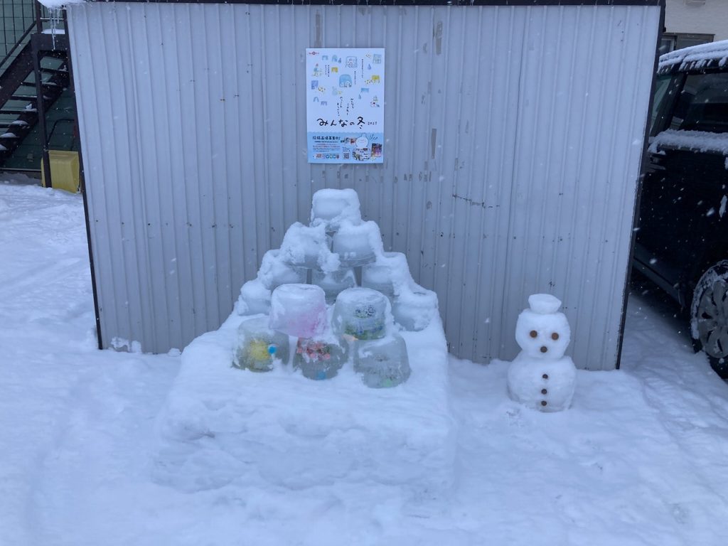 昨日の日曜日は、朝から屋根から落ちた雪の始末で半日。融けて固まった雪なので、スコップで崩しながら手がかかります。ベランダや物置の雪を始末して終わり。午後からは、楽しみの雪だるまを作り、先日頂いて来た「みんなの冬まつり2021」のポスターを貼り付けました。犬の散歩をしている女性から「ステキですね。」と声を掛けられ、ほっこり。さらに、冷え込むと聞いたのでアイスキャンドルを作ることに。何という日曜日の過ごし方でしょうね。そして、今朝は思惑通りに寒くなり、それぞれできましたが、でき栄えは今一かな。