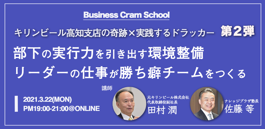 【対談講座】キリンビール高知支店の奇跡×実践するドラッカー『部下の実行力を引き出す環境整備 ~リーダーの仕事が勝ち癖チームをつくる』ビジネス塾オンライン 講師:田村 潤,佐藤 等