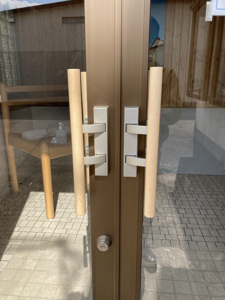 引っ越しをした事務所入り口ですが、変わったところがあります。お判りでしょうか。ドワノブを金属から木製に変えました。その都度感じる事は、物を作り出せる喜びです。商品は勿論の事、フローリング、フェンス、レリーフに至るまで木製であれば作ることができます。今、コサイン旭川本店のカウンターを製作しています。 私たちは、お客様の幸せな暮らしを願い、「自分たちで考え、自分たちで作り、自分たちで販売する」事ができるものづくりメーカー「コサイン」です。