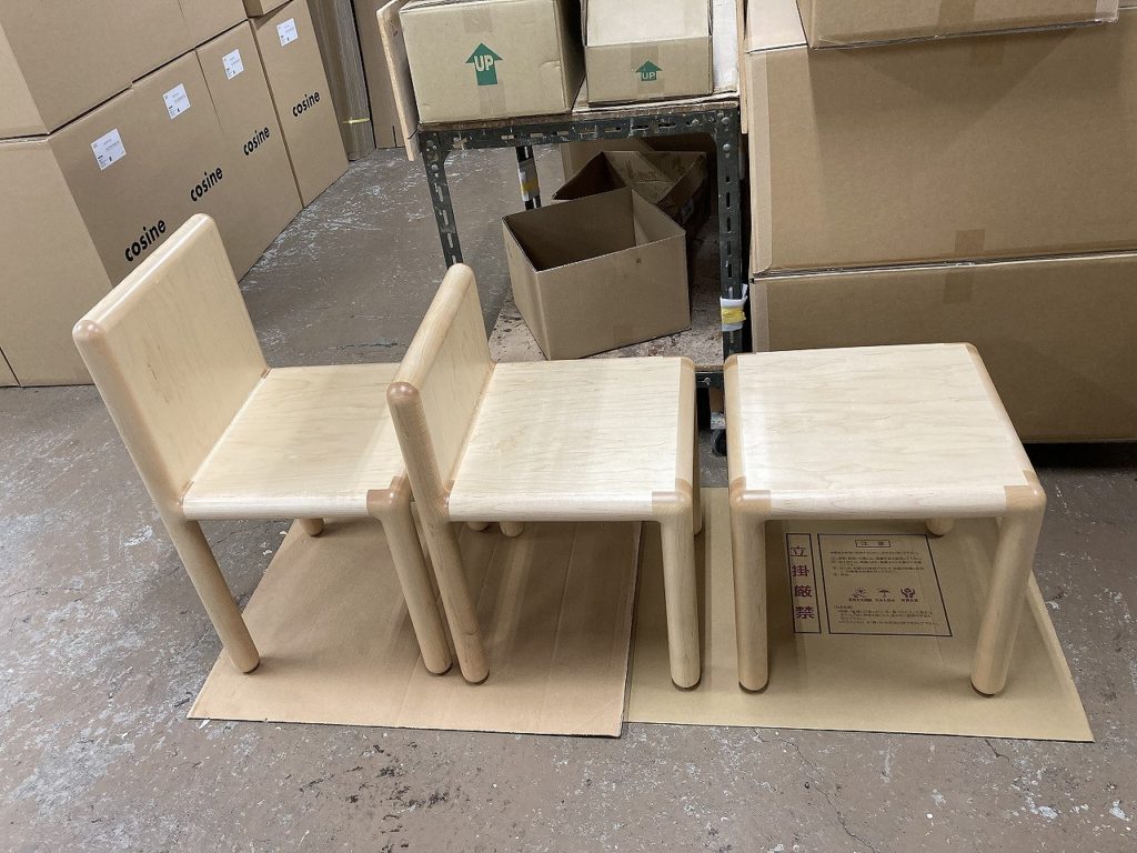 2月、1次試作を検討後製品化決定した、チェアー、ハーフチェアー、スツール、デスク、サイドテーブルの5アイテム。