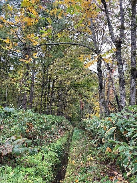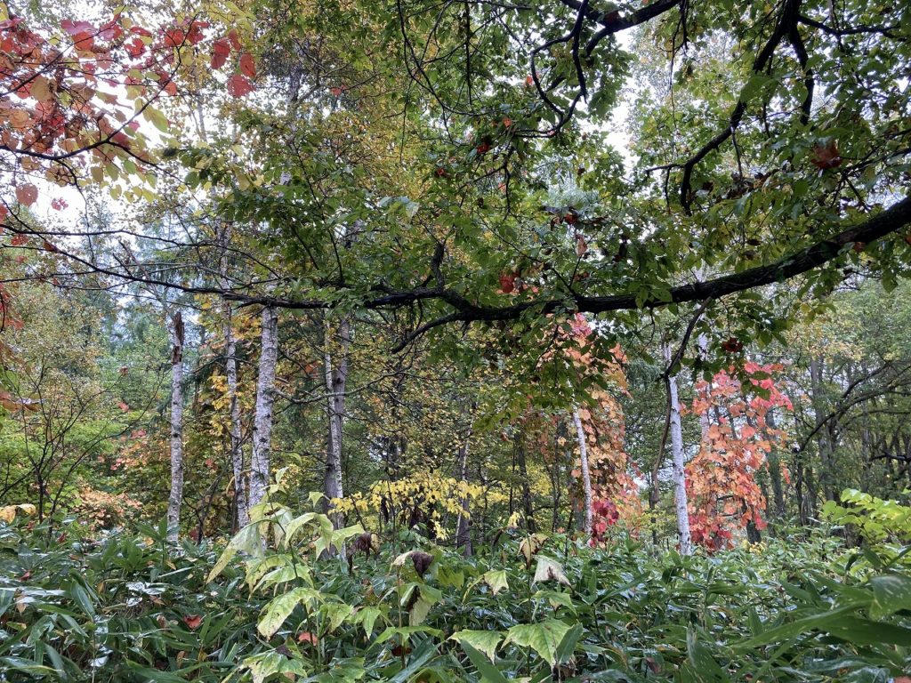 そんな中、今週社員と共にコサインの森の整備に行きます。年に一度ですが、私達が使っている木材の生態系を知る事、社員お客様の保養の場にと創業25年に、47,000㎡(東京ドーム1個分)の森を購入しました。主に、植林された樹齢50~60年のカラマツ材が育っていますが、その中に北海度に群生する広葉樹材を見る事ができ、見本林のようです。昨日、下見に行って来ました。念のために鈴、クマよけスプレーを携帯し遊歩道を一周して来ました。紅葉も見頃でしたが、いたるところに山ぶどうが群生しているのですが、実が見当たりません。昨年は凄かったんですが、今年の暑さのせいでしょうか。食べ物が無ければ野生の動物も人里に下りてくるのもわかります。コサインの森を購入した時にも熊生息地の看板が立って居ました。皆で、一息つける一時になればいいね。