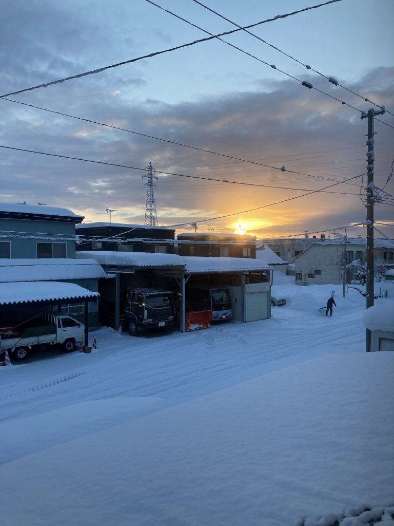 ピリッと締まり、うっすらと雪が降り積もった月曜日の朝を迎えました。週初めは、全体朝礼を8時から行っています。司会者の号令に合わせ、朝の挨拶⇒社訓⇒社長挨拶近況報告⇒社員からの連絡事項⇒司会者からのグットニュース⇒今週も頑張りましょう!で終えます。何時も、何を話そうかと話題を考えながら組み立てて話しています。今週は会議事や新入社員研修が予定されています。