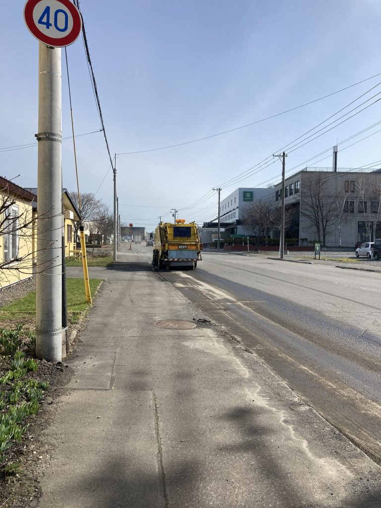 雪が融けると、特に交差点付近は冬にスリップ防止にまかれた切り砂で一杯になります。一緒にポイ捨てゴミもあって、環境によろしくありません。そこに登場する黄色い清掃車。これで、すっきり!普段見かけない鳥たちも戻って来ます。会社の窓から見ているとカラスが餌を石と石の間に隠していました。(笑) カラスも子育ての時期が来ると要注意です。四季折々楽しみ事があります。