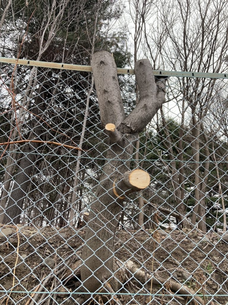 薄曇りの朝を迎えました。明日は稼働日なので自宅でテレワーク集中。月曜日から今年初、ウォーキング通勤、2.4Kmを25分かけて歩きます。車窓から見る景色や光景との違いを感じながら楽しんで居ます。幹線道路から右折し会社に向かう交差点向かいの山は、雪山です。市内の雪をダンプで運んで積み上げた雪ですが、放置したままなので5月まで融けきらないと思います。同じように川原に積み上げた雪は、雪山の部分部分を欠き取り空気を入れるので直ぐに融けてしまいます。右折し、会社に向かう右手に林が少し残っていて、針葉樹が中心ですが、中に桑の木やグミの木、イタヤなどがあります。最近フェンスの周りの生い茂っている木が切られて居ました。中に金網から枝が出て育っている木を見ると金網を樹皮に巻き込んで生きようとする生命力を感じます。