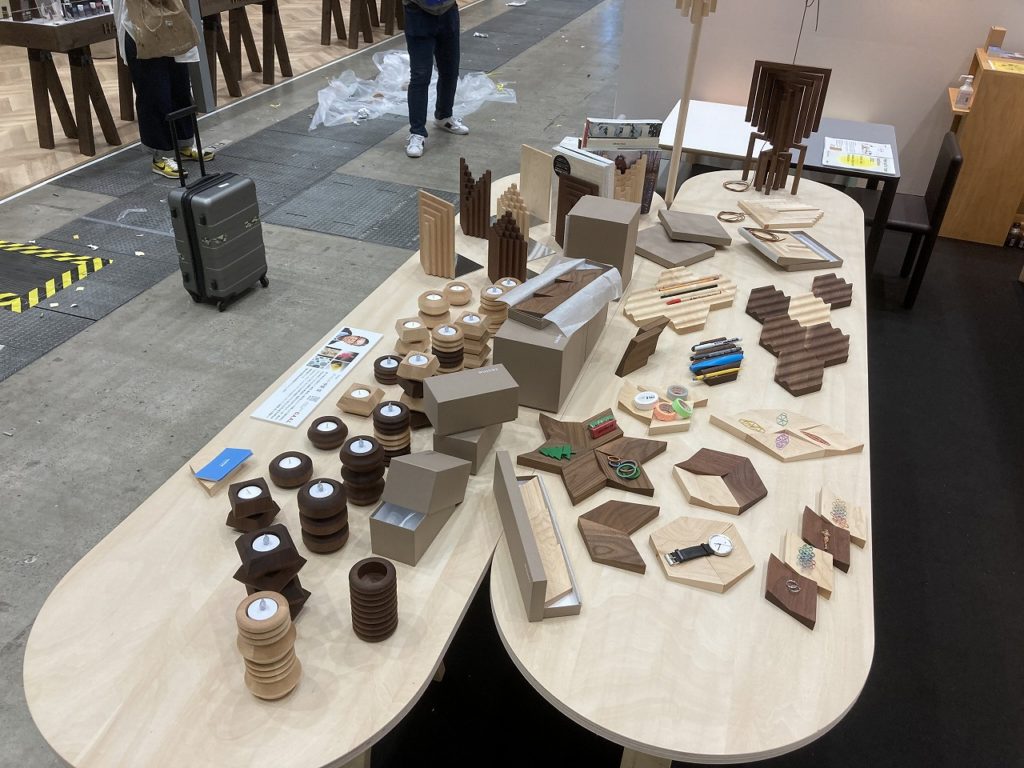 6月1日~3日東京ビックサイトで開催されたILT(インテリアライフスタイルTOKYO)に出展。主催者発表では、【出展者数】515社【来場者】16,411名(3日間合計)。今回は、昨年発表いたしました『coa』のデザインを手がけたアーティスト伊賀信氏にデザインを依頼し、木の端材に形を与え、あげる人・もらう人が幸せになれるギフトを発表しました。会場ではデザインを担当していただいた伊賀氏にも来ていただき、商品の魅力やコサインの取組などをご紹介させて頂きました。200名前後の方と名刺交換させていただき、販路開拓に繋がる出会いもあり、今後が楽しみです。
