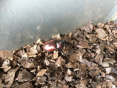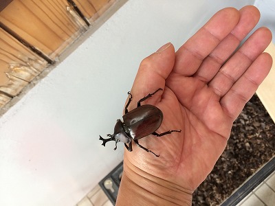 本日は、私事で午後から出社しました。何時ものように、工房を一周しますが、楽しみなのがカブト虫が何時地表に出てくるかと今日ものぞくと、何と1匹生まれて居ました。角があるのでオスだと思います。これから数匹出てくると思います。気を付けないと飛んで行ってしまいます。